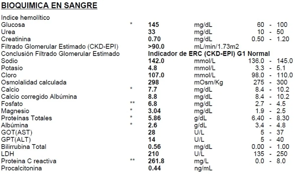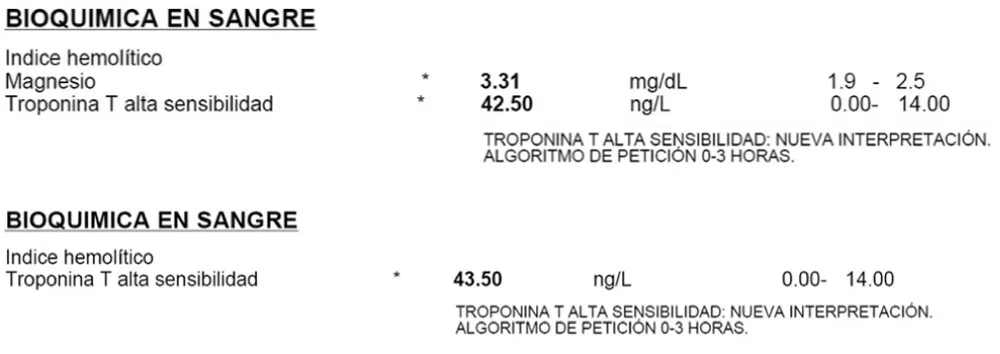 On ICU day 7, the ECG monitor showed significant QRS morphology changes. A 12-lead ECG (Image 4) revealed sinus rhythm at 85 bpm, PR interval 200 ms, normal axis, QRS 110 ms, ST-segment elevation in leads I, aVL, II, III, aVF, V5–V6, ST depression in V1–V4, and negative T waves in I, aVL, V5–V6. QTc was prolonged to 520 ms. Bedside echocardiography showed preserved biventricular function (LVEF 60%), no regional wall motion abnormalities were observed, no significant valvular disease, and a small, subacute pericardial effusion without signs of tamponade. Serial high-sensitivity troponin I levels were 42.5 ng/L and 43.5 ng/L three hours apart (Image 2). No dynamic changes were observed. Laboratory tests revealed metabolic acidosis (pH 7.21, HCO3 17.2 mmol/L), mild hypermagnesemia (3.31 mg/dL), and hyperphosphatemia (4.7 mg/dL). Sodium, chloride, and calcium levels were within the normal range (142 mmol/L, 107 mmol/L, and 8.8 mg/dL, respectively, as shown in Image 1). Notably, metoclopramide and erythromycin had been initiated that same day. Inflammatory markers remained markedly elevated (Images 1-5).